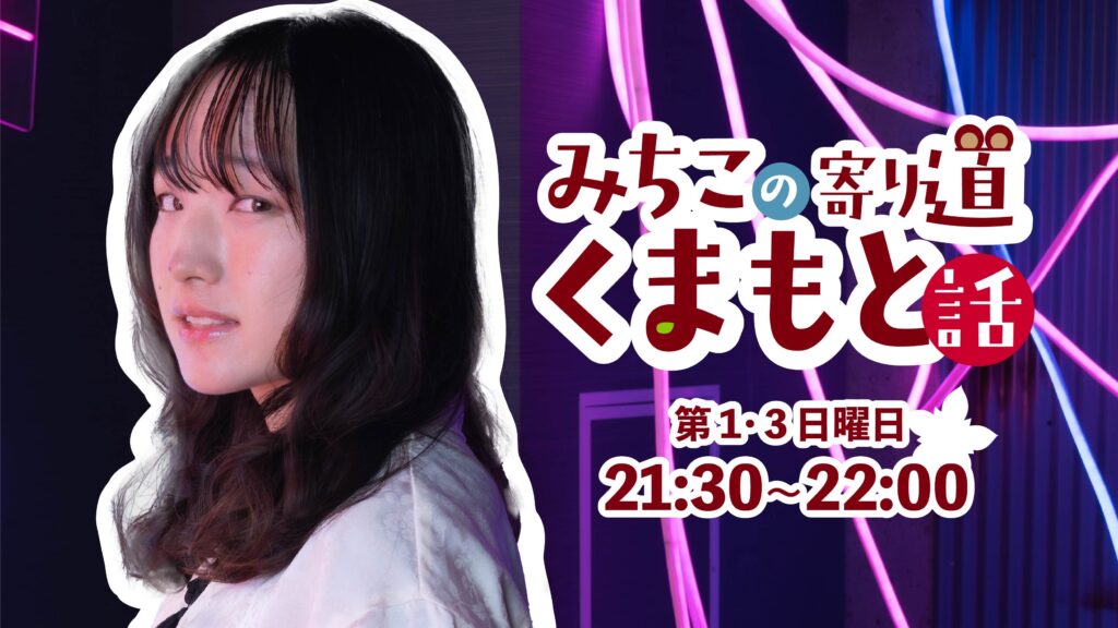 | 視聴者へのメッセージ | ちょっと寄り道して、ひと息つく時間をお届け!くまもとの話をしながら、日々のことや思ったことを、ゆるっとおしゃべりしていきます。一緒に寄り道していってくださいね! |