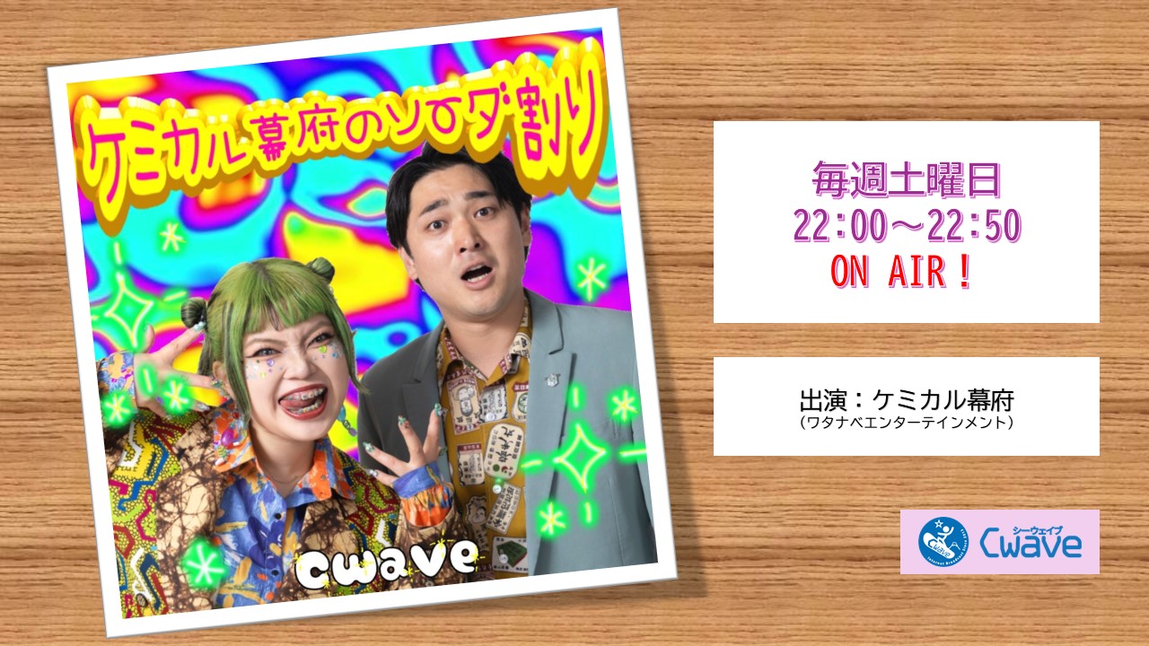 【帯番組】 『Moonlight☆Wave』21:00~21:50 『笑wave』22:00~22:30 『Music Wave』23:00~24:00 【月曜日】 『夢色ロケット』 『恋愛番長 石川円華のもうすぐいっちゃう♡~Dreams come will soon true!~』 『野球の路』 【火曜日】 『朝風心愛の愛のダダ漏れ』 『前川正樹のみっちり地理ラジオ』 『烈火雷鳴と一緒にあいべラジオ』 【水曜日】 『千とせとさくらと京子の午後のティータイム』 『飛澤結の「お悩み解決!ゆの子のバブリーラヂオ」』 『内川ひろ美の歌のおくりもの』 『下町シネマ🎬ティーアップ⛳』 『のののんのsea angel』 『ゆきおとこが詩を詠むラジオ』 【木曜日】 『PPP TOKYO Presents「PARTY LABO」』 『唄っていいとも』 『猪狩璃乃の がりーず夢計画!』 『スレパンふくみの音と生きやがれ』 『澤村壱番の人生PocaCosa超』 『チャイム松丘とBOOMER伊勢の俺たちに任せろ!?』 『西口ドアの扉電信』 『しあのしぇあはぴラジオ』(外部サイト) 【金曜日】 『大平憲太郎・辻朱弥のじゃん!憲!ぽんっ!』 『藤田早希の今日から友達』 『神咲妃奈のEnjoy Living』 【土曜日】 『天翔ゆいの自信を持ってさあぞうぞ!』 『元アンカーのアナタも人間ヤメマスカ?』 『ポMカズダイのアゲラジMAX』 『怪探倶楽部』 『りんりんりりん♪りんごりん』 『北千住だれでも放送局』 『ケミカル幕府のソーダ割り』 『工藤アスナの懐かし名曲語りますわ✾』 『Ari World』 【日曜日】 『平成一桁なあたしたち、おしゃべりが止まりませんじゅ♡』 『ゆきおとことRenkaの日曜スベリ隊』 『TWILIGHT☆BREEZE』 『@Jackpot』 『Music Bar ZAZプレゼンツ 喜田ゆかりのMusic for you』 『イロドリRADIO』 『みちこの寄り道くまもと話』 『KSJ発!ザクマシンガン山田のOH!ずんずずーん!!』 【不定期番組・特別番組】 『ワンタイムオンエア』 『Cwaveかるたバトル』 『山根千佳の相撲三昧』 『チョコミント仮面。のチョコミン党拡大計画』 『北千住の達人&木曽さんちゅうの集え!千住民』 『レッスン祐輝の鉄道wave』 『YOKOHAMA DAYS』 『HiiT Wave』 『ジャッキーWave』 『MarinesWave』 『Reysol Wave』 『千寿新年会~2026年もCwaveをよろしく~』 『セレクトショップ藤橋屋』 【放送終了番組】 『日曜日の魔女達』 『阿部宣祐のスポーツとらのアナ』 『Nao+出没注意!!』 『ゆきおとこの流山だョ! 全員集合』 『りんりんTV倫理人図鑑』 『Sun20~RAYSAのヒトリシキリ~』 『日本酒と器とおつまみと』 『声優プラネタリウム』