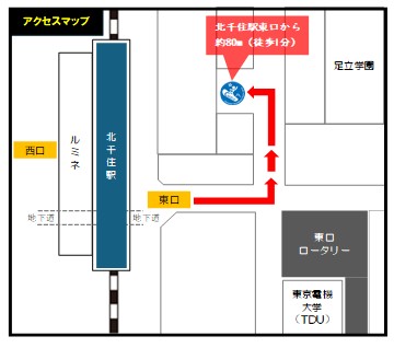 最寄駅JR上野東京ライン・常磐線・東京メトロ日比谷線・千代田線・東武伊勢崎線・つくばエクスプレス「北千住」駅 東口から徒歩1分