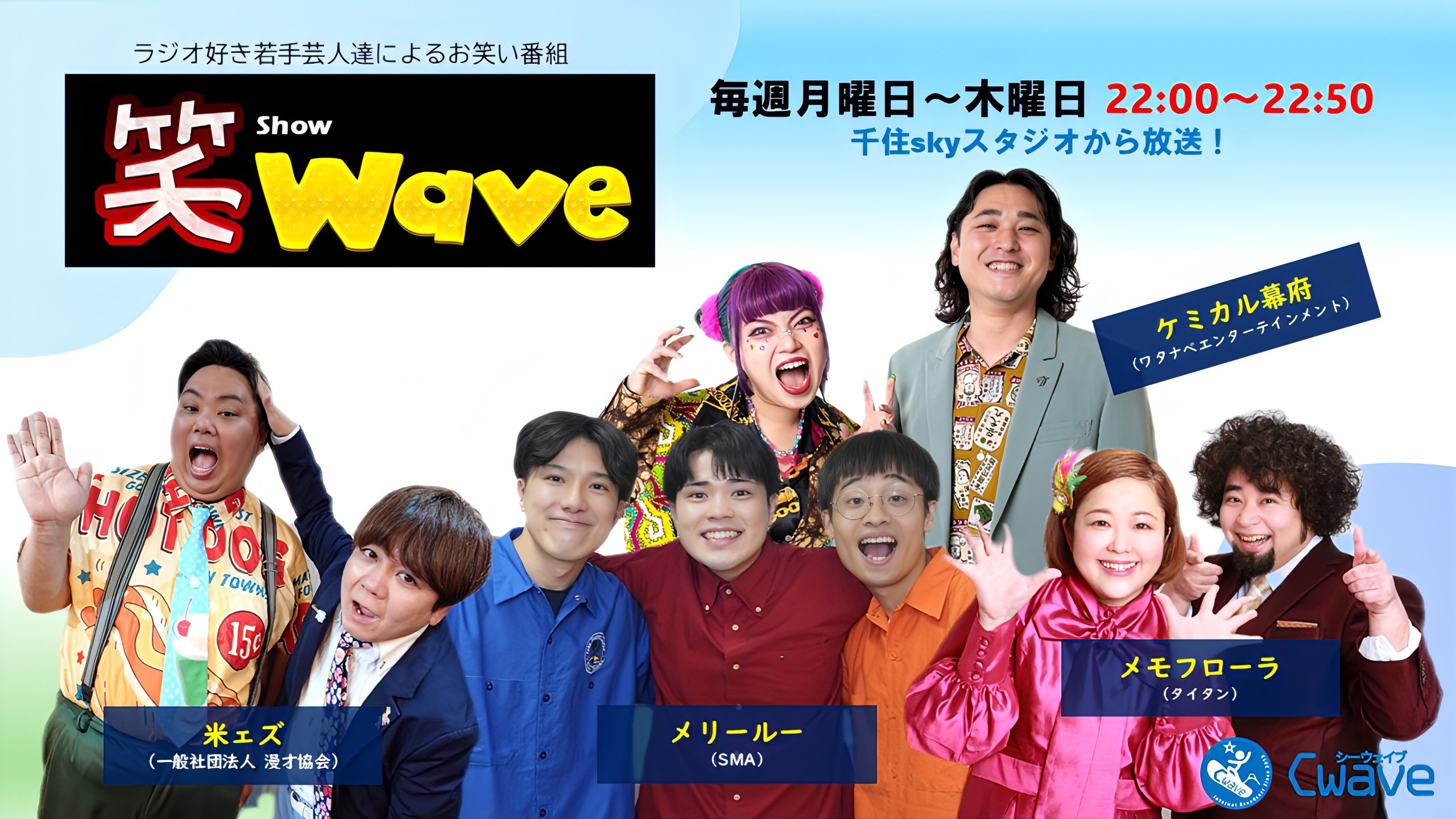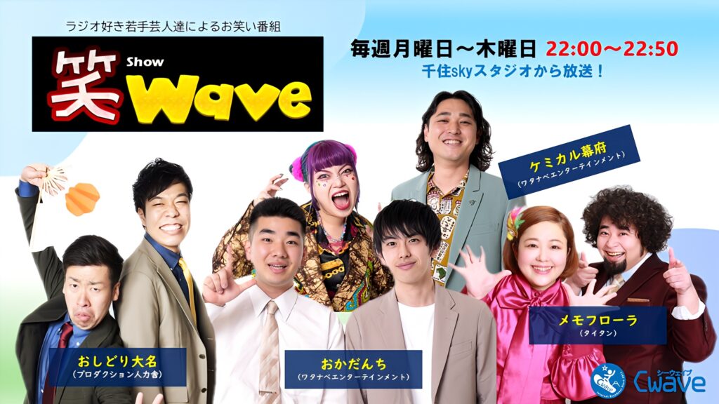 ラジオが好きな若手お笑いコンビ4組が、Cwave千住skyスタジオから、日替わりでお笑いコンテンツをお届けします。