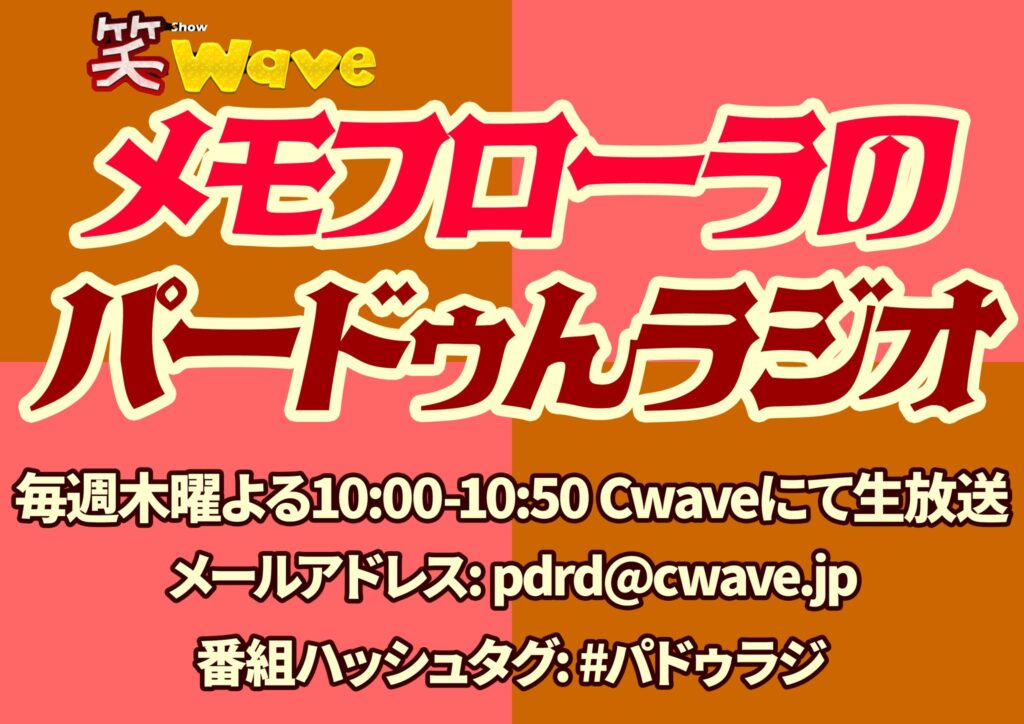 | 「令和の早口言葉を作ろう」 | メモフローラの2⼈が早⼝⾔葉に挑戦して、芸⼈に必要な美しい滑⾆を⾝につけよう!というコーナー。今までにない全く新しい“令和の早⼝⾔葉”をご投稿ください。 |