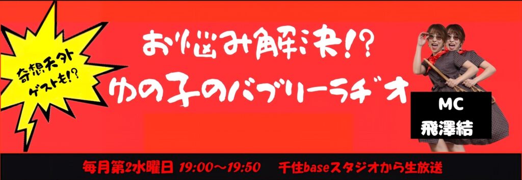 視聴者へのメッセージ | ラジオの前のあなたのお悩みをゆの子が明るくポジティブに解決する番組! 北千住の街ブラロケや、話題のあれこれを取り上げ、Cwaveから日本を明るくしていきます☆ 悩む暇があったらスタジオへいらっしゃ〜い! |
